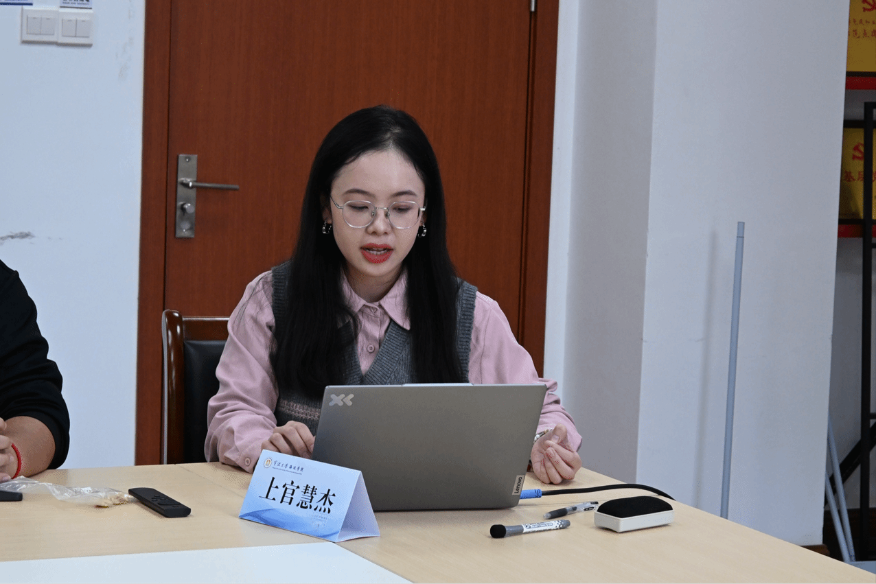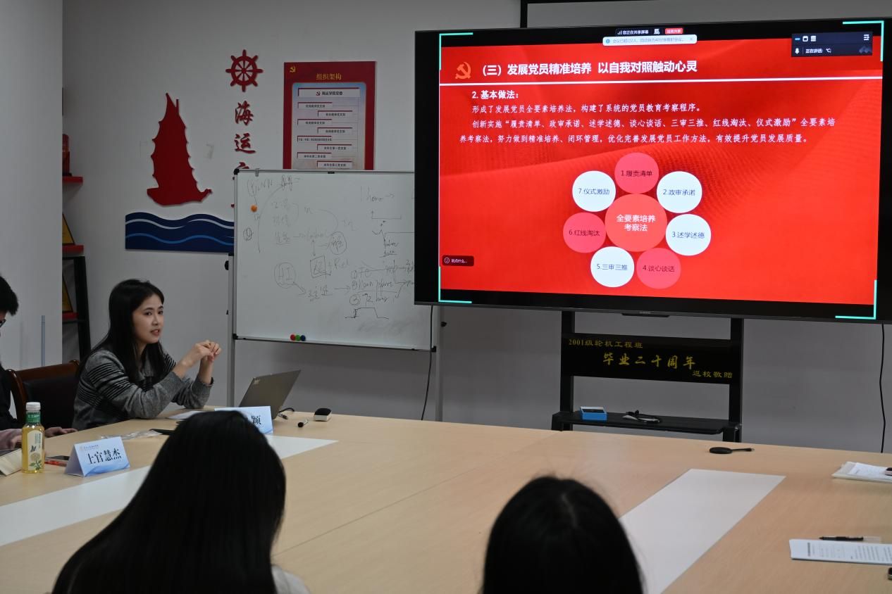 王淑颖同志就历史系党支部“基本情况、主要做法、个人感悟”三个方面展开分享。她重点介绍了支部“炼忠魂、铸史魂、育善魂”的建设目标和“为人求真、与人为善、成人之美”的团队文化,并围绕组织提升、党员质量、党团融合、微课育人、学风促进和志愿服务“六大行动”,详细阐述了支部如何推动党建工作从“形式化”走向“心灵化”,引导党员从“被动参与”转向“主动参与”。结合自身经历,王淑颖特别谈到志愿服务对她的深刻影响,与兴仁七中结对、“铸魂”奖助学金等志愿服务活动让她深刻认识到党员的责任与担当,最终促使她选择加入研究生支教团,将青春投身于西部教育事业,以实际行动践行一名青年共产党员的初心使命。