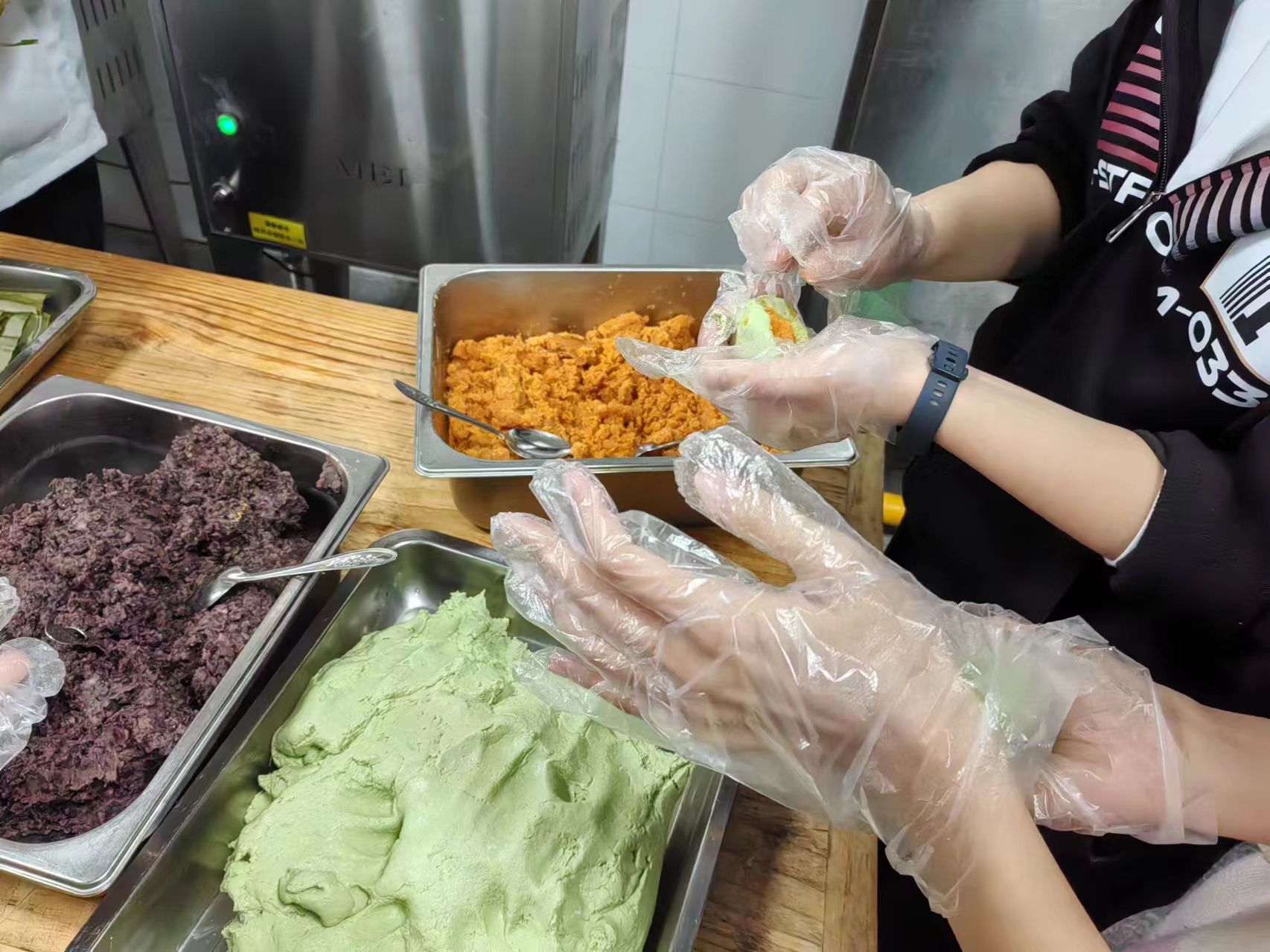清明节既是祭奠祖先、缅怀先人的节日,也是艾草碧绿、青团飘香的时节。3月31日,捆绑调教 在一餐食堂二楼举办了“青青团子聚人心,传承民俗忆清明”清明节特别活动,同学们亲手做好青团并送给食堂大叔、宿管阿姨等校区工作人员。学院用“做青团,送温暖”的方式对学生潜移默化地进行劳动教育和感恩教育,鼓励学生弘扬传统文化,表达自己对校区工作人员的敬意与感谢。
