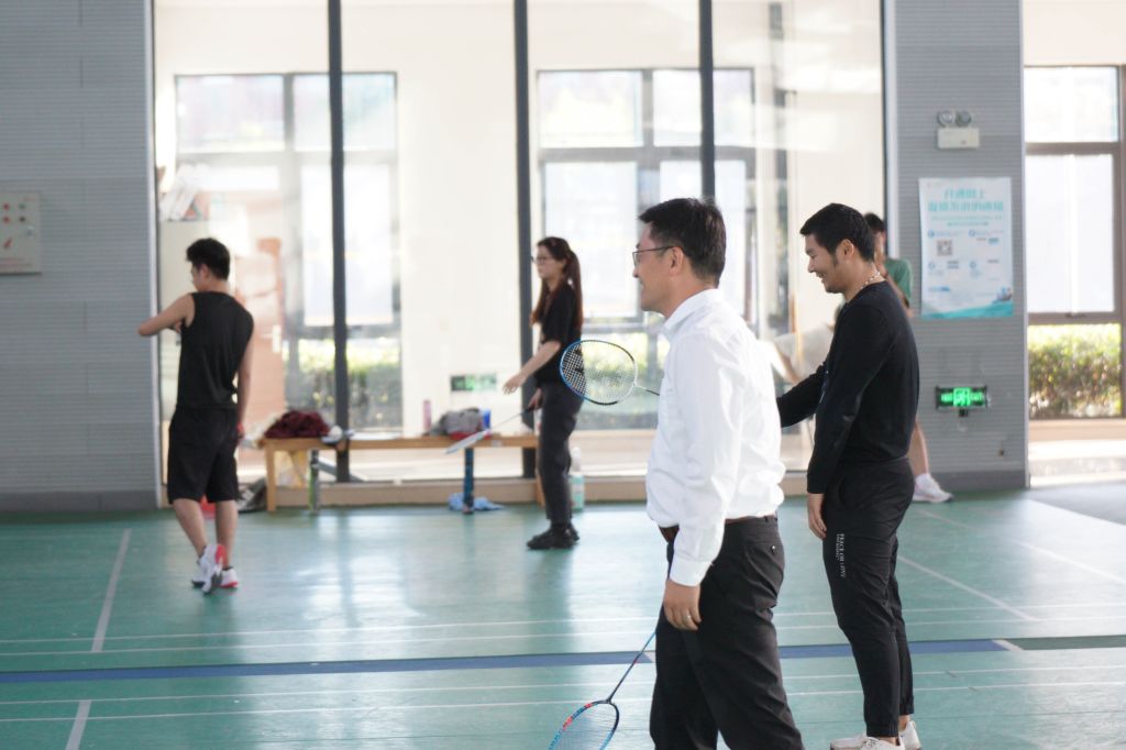 座谈会后,校友们来到球场与在校生进行了一场酣畅淋漓的羽毛球比赛,大家回忆青春,享受运动,找回了学生时代的热血与激情。