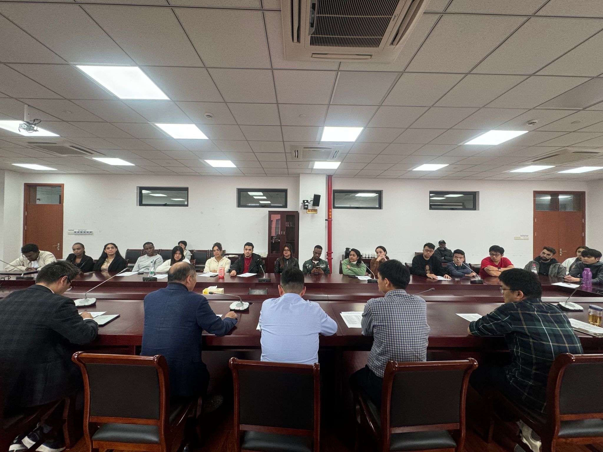 在座谈交流环节,师生们围绕学风建设、国际学生实训和汉语学习等议题展开了热烈的讨论。国际学生们纷纷表示,通过此次座谈会,他们更加清晰地认识到了学风建设的重要性,也学到了很多实用的学习方法和技巧。同时,他们也提出了自己在学习和生活中遇到的一些问题和困惑,希望得到学院和老师的帮助和指导。