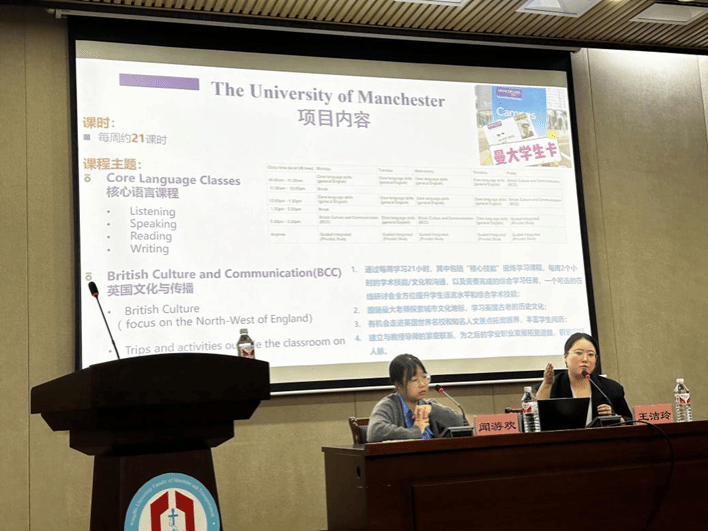 宣讲会上,王洁玲老师为学生们介绍了2025年寒假日本名校名企访学项目以及曼彻斯特大学寒假访学项目的项目内容、课程设置及特色亮点。闻游欢老师介绍了图卢兹商学院访学项目详情及申请流程,此外,她还详细介绍了学校出国学习交流的项目类型、解读了校级资助政策、出国项目申请流程以及出国手续办理流程等内容。两位老师通过PPT展示和项目分享,让学生们对出国学习交流有了更深入的了解。
