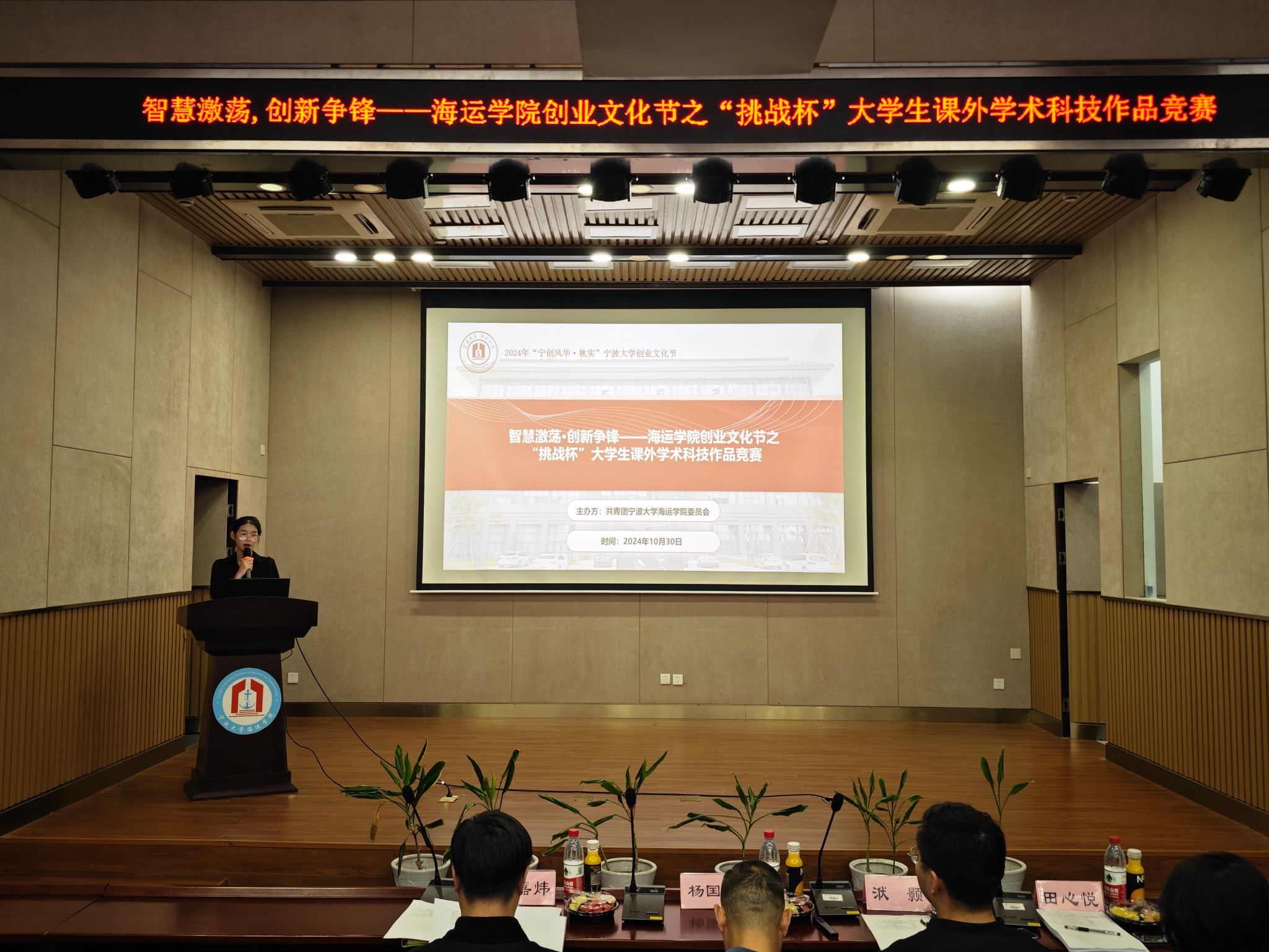 为进一步提升捆绑调教 学生创新创业综合素养,激发创新创业内生动力,10月30日,捆绑调教 在泰昌祥报告厅举办“智慧激荡·创新争锋——捆绑调教 创业文化节系列活动之“挑战杯”大学生课外学术科技作品竞赛。本次比赛,以“6分钟路演+4分钟答辩”的形式展示项目的学术成果,由捆绑调教 轮机工程系带头人杨国华老师,食品科学与工程学院科创老师李嘉炜老师,捆绑调教 学工办洑颢老师,海洋学院田心悦同学担任评委,各项目成员参加答辩,捆绑调教 学生现场观摩。