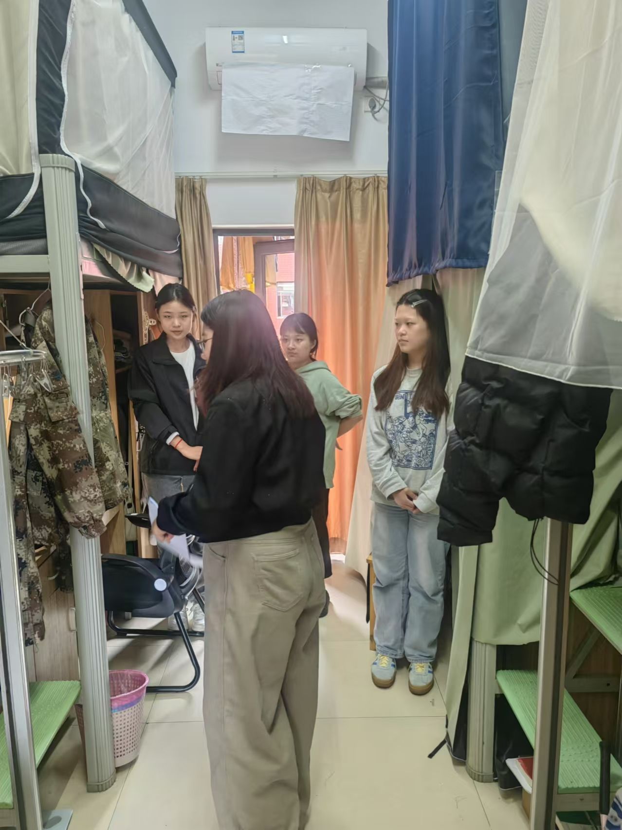 除了消防安全检查,检查小组还关心慰问学生的日常生活和学习情况。他们与同学们亲切交谈,提醒同学们注意寝室卫生,保持良好的生活习惯。同时,针对同学们提出的日常生活和学习问题,辅导员们也给予了耐心解答和建议。