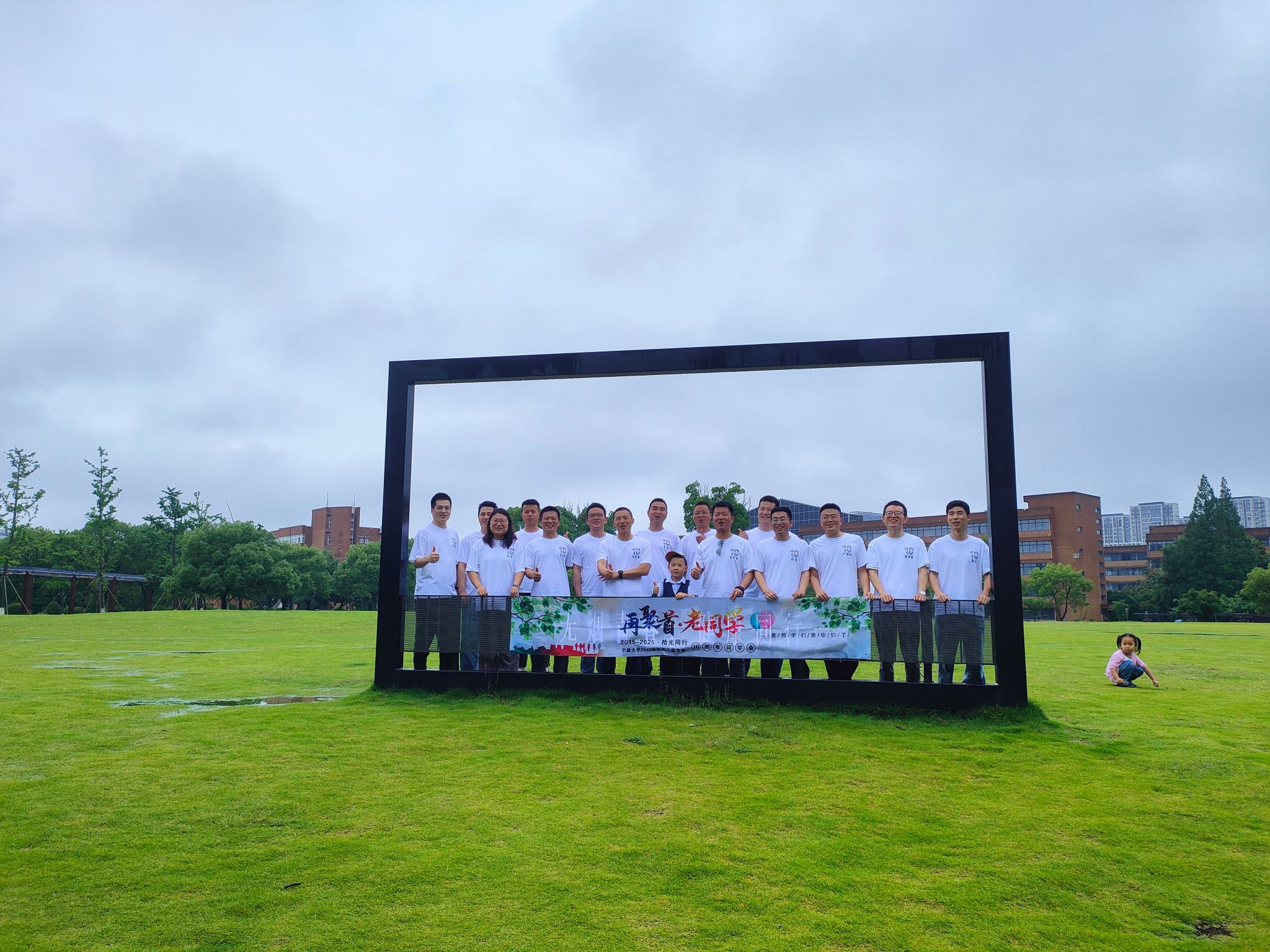 上午9时30分,校友们陆续抵达梅山校区海运楼1409会议室。签到处精心准备了印有全体同学名字的纪念文化衫,校友们换上统一的服装,瞬间拉近了彼此的距离。十年未见的老同学相拥寒暄,会议室里笑声不断。“虽然下着大雨,但大家热情一点没减,连家属小朋友都跟着兴奋!”活动组织者、老班长严海鸣感慨道。